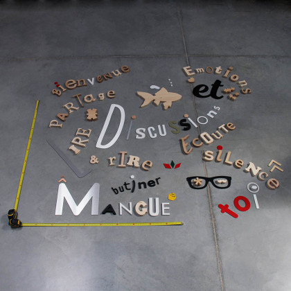 Sélection de lettres en vrac de différentes tailles et matériaux (PVC expansé, aluminium dibond et bois bruts).
