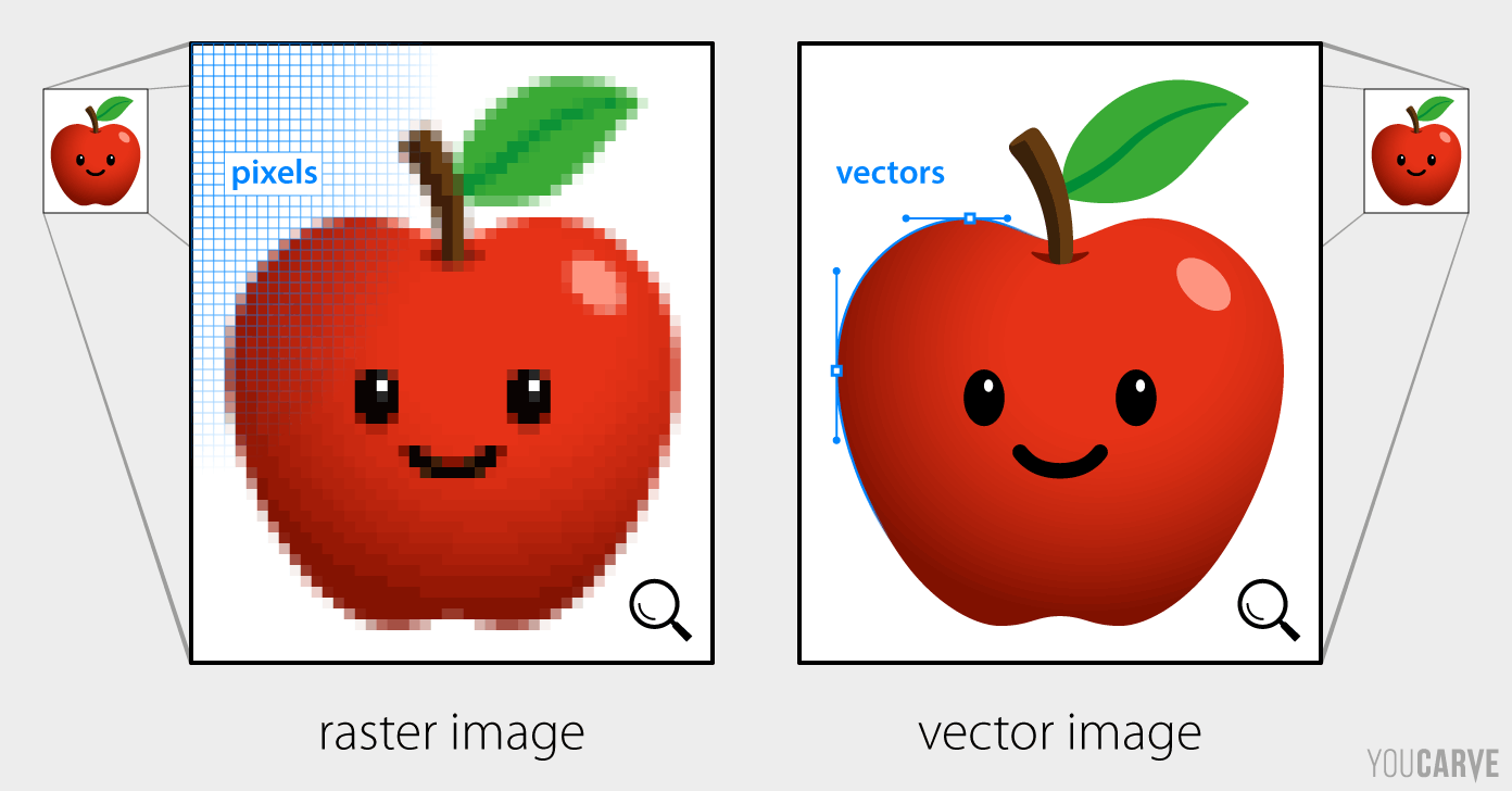 These two image formats offer different advantages: vector images can be resized without loss of quality and are better suited for logos, illustrations, and graphics, while bitmap images (pixels) are better suited for photographs.