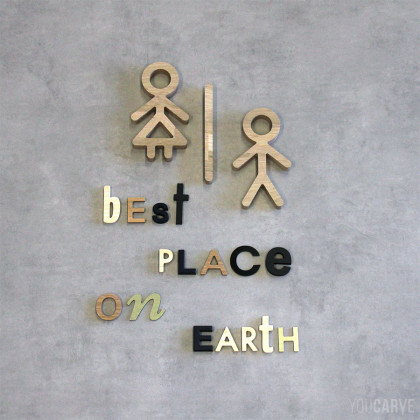 Composition créative de lettres de différentes tailles et matériaux (PVC expansé, aluminium dibond et bois).