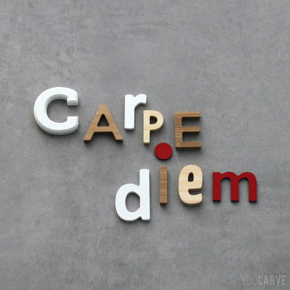Composition créative de lettres de différentes tailles et matériaux (PVC expansé, aluminium dibond et bois).