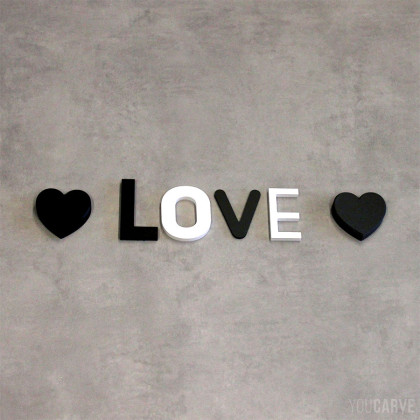 Composition créative de lettres de différentes tailles et matériaux (PVC expansé, aluminium dibond et bois).