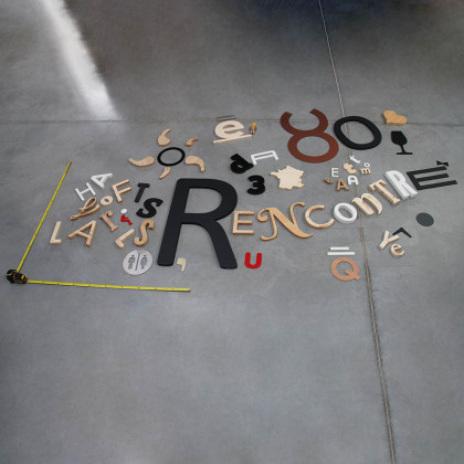 Sélection de lettres en vrac de différentes tailles et matériaux (PVC expansé, aluminium dibond et bois bruts).